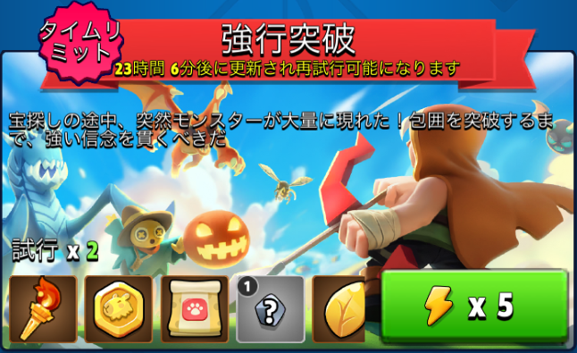 このタブのイベントは基本的にアーチャー伝説の戦闘システムをそのまま使ったものとなっており、ここに出る不定期イベントも同様である。