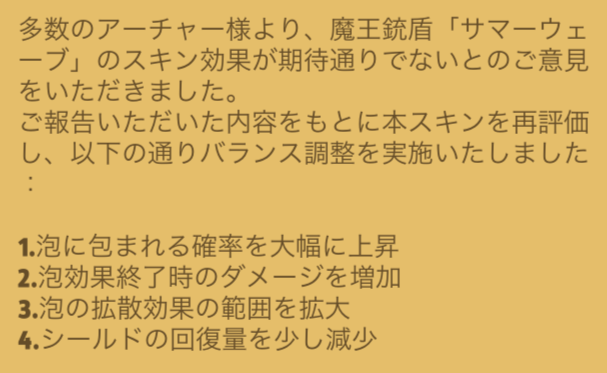 サマーウェーブは登場直後に下の画像の通りバランス調整が行われた。