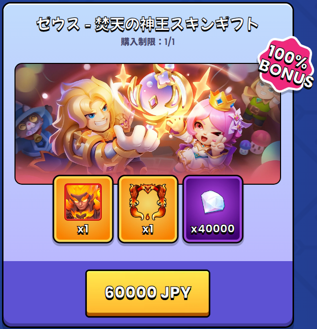 ゼウスの衣装は10万円ほど払うと次の衣装が出るまではPvPで無双できるといったものばかりである。とはいえ回数無制限でHPをフル回復できるギフトジェネレータ(サンタ)は流石に強すぎたようでがっつりナーフされた。